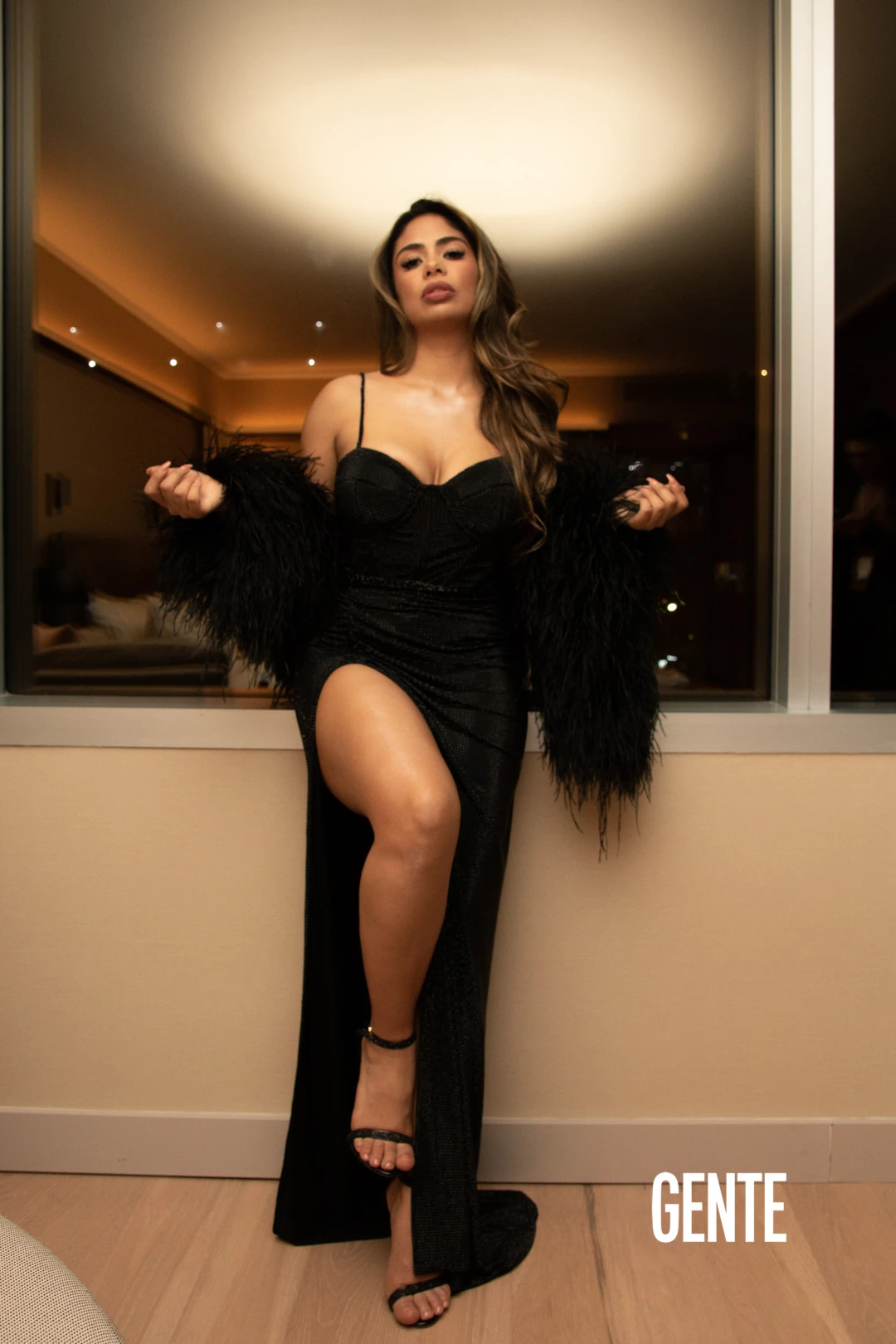 ”Miren este vestido divino de Gustavo Cadile que me enviaron desde Estados Unidos especialmente para los Martín Fierro, y obvio la compañía de mi amor (Luis Petri) que hace que todo sea perfecto”, expresó la nominada al MF por su labor en el Noticiero Central de Telefé.