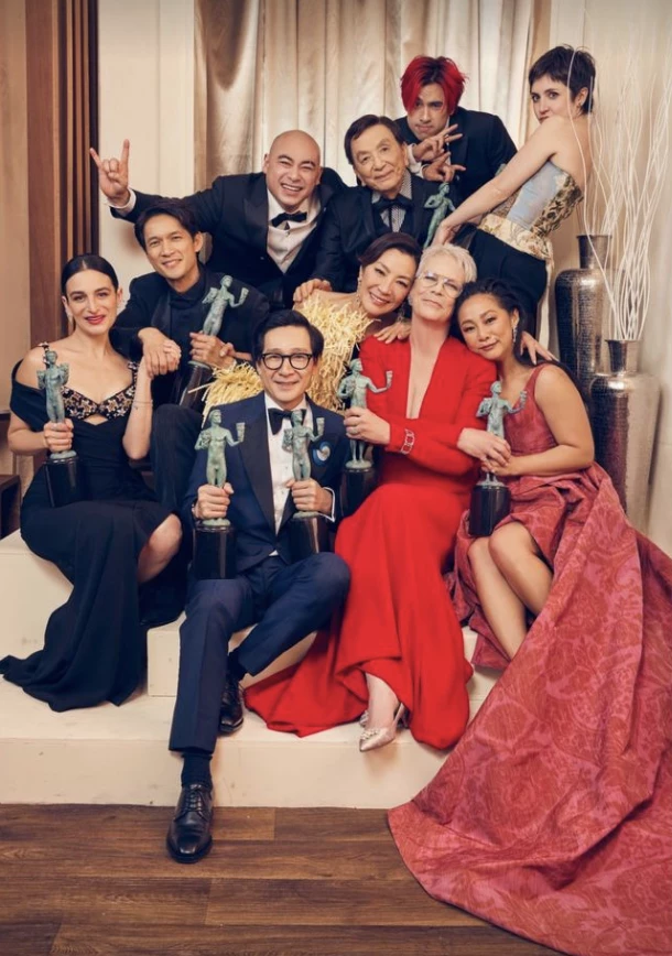 La película 'Todo en todas partes al mismo tiempo' arrasó en la 29ª edición de los Premios del Sindicato de Actores (SAG Awards, en inglés), alzándose -entre otros galardones- con el más relevante, el que reconoce al mejor elenco o reparto de la temporada cinematográfica. Asimismo, las protagonistas del film de Daniel Kwan y Daniel Scheinert, Michelle Yeoh y Jamie Lee Curtis, también tuvieron un arrollador paso por la alfombra roja robándose todas las miradas de los presentes.