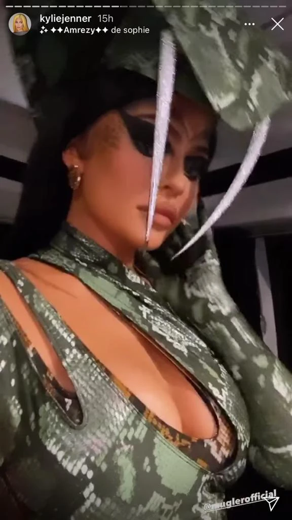 Aunque Justin y Hailey Bieber también se robaron los flashes, toda la atención se la llevó el disfraz de Kylie creado por Mugler. La más joven del clan se convirtió en King Cobra y alucinó con un diseño de serpiente, enorme cabeza y colmillos cual Black Mamba.