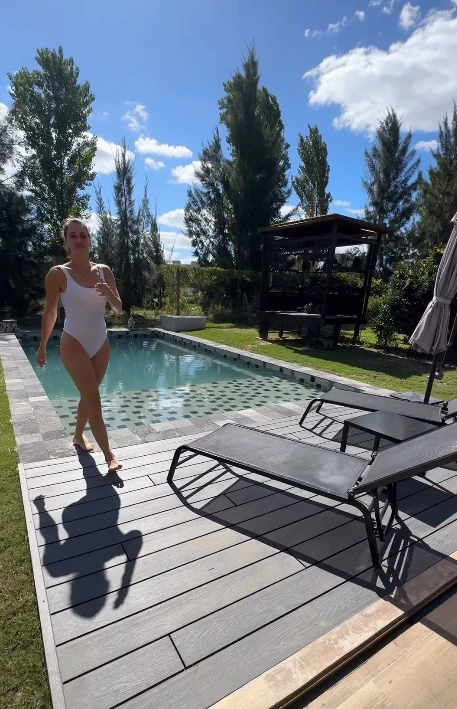Uno de los rincones que se destacó por su belleza fue la piscina, en el fondo de su casa en un barrio privado. El contacto con la naturaleza suma al espacio, donde se armaron un deck con diferentes comodidades, ideal para este nuevo refugio veraniego.