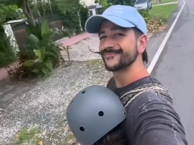En las imágenes se observa al artista paseando en patineta por el barrio privado en el que viven en Estados Unidos, lo que impactó a sus seguidores es que iba con su pequeña hija a upa, "atada" a su cintura mientras grababa sobre la tabla.