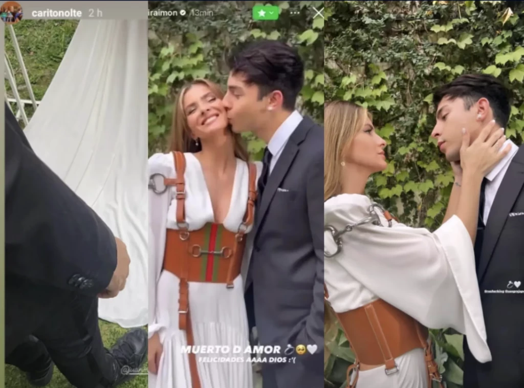 Es que, allegados a la actriz y el cantante compartieron fotos que alimentaron los rumores de una posible boda secreta: ella de blanco, él de traje y emojis de anillos. En los posteos de Instagram que hiccieron el fotógrafo Thomas Raimon, amigo de los novios, y Caro Nolte, representante de la actriz, se pueden ver las apuestas fashionistas que eligieron para la ocasión y que tienen a la prensa argentina con la duda.