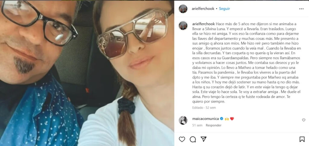 Tras la trágica noticia del fallecimiento de Silvina, Christian utilizó sus redes sociales para hacerle una despedida virtual a su gran amiga. Además, ahí relató cómo nació su relación y cómo era el vínculo entre ambos.
