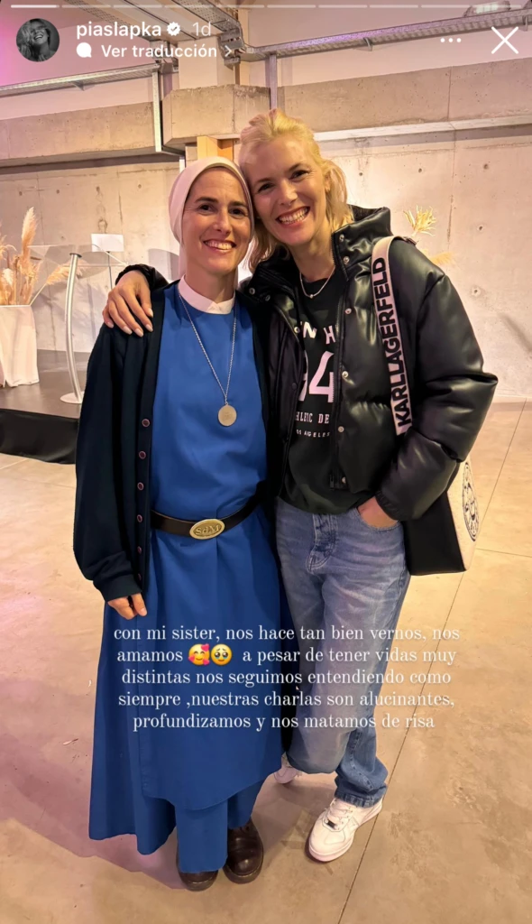 Cada vez que puede, Pía Slapka se hace un tiempo para reencontrarse con su hermana, María de la Paz, quien decidió tomar el camino de la religión y se convirtió en monja. Aunque sus vidas son completamente diferentes, ellas son muy unidas y siempre que sus agendas se los permite, comparten tiempo juntas. Esto mismo sucedió horas atrás, cuando la modelo mostró el conmovedor reencuentro que tuvo con María.