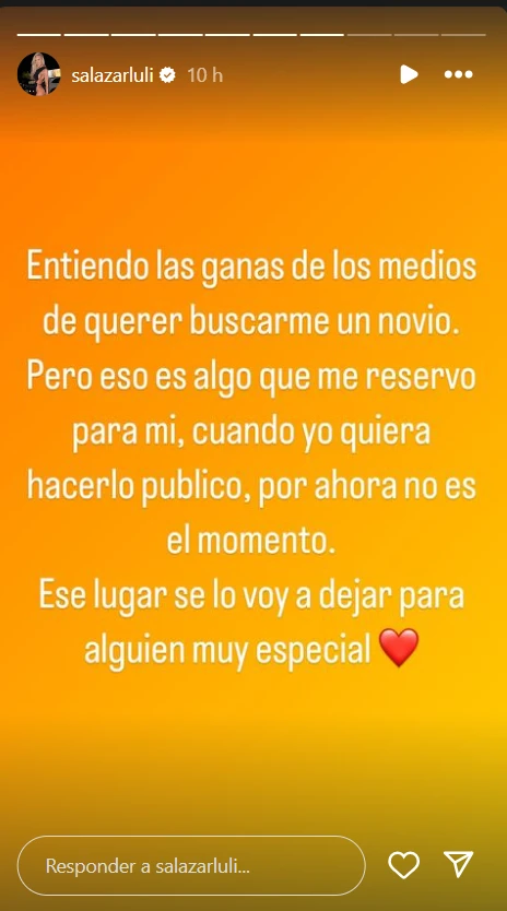 “Entiendo las ganas de los medios de querer buscarme un novio. Pero eso es algo que me reservo para mí, cuando yo quiera hacerlo público, por ahora no es el momento. Ese lugar se lo voy a dejar para alguien muy especial”, cerró Luli apuntando a los rumores sobre su vida sentimental.