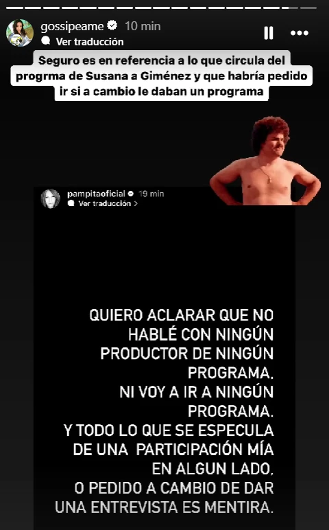 Ante esto, Pochi de @Gossipeame compartió la historia de Carolina y afirmó: "Seguro es en referencia a lo que circula del programa de Susana Giménez, y que habría pedido ir si a cambio le daban un programa".