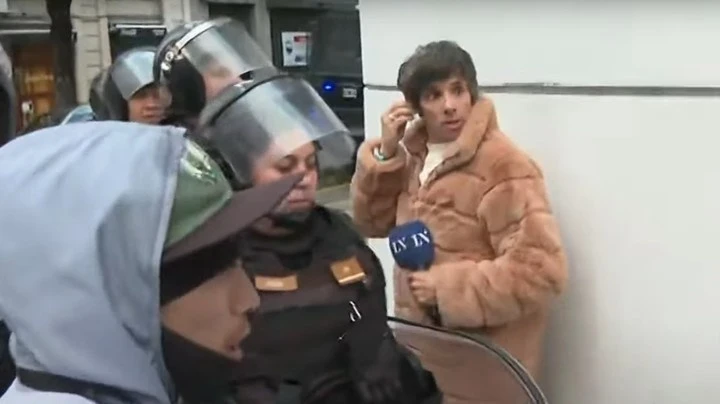Este sábado, durante la marcha convocada frente al Congreso para exigir justicia por el triple femicidio de Brenda del Castillo, Morena Verdi y Lara Gutiérrez en Florencio Varela, el periodista Robertito Funes Ugarte fue agredido por un grupo de manifestantes. El movilero de LN+ se encontraba cubriendo el evento cuando, según relató, fue insultado, empujado y arañado por personas encapuchadas, entre ellas una mujer trans que encabezaba la protesta.