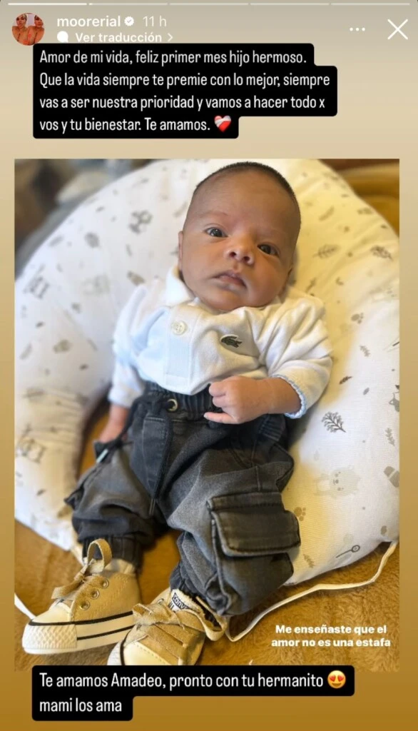 Sin más explicaciones, la hija de Jorge Rial continuó compartiendo desde su cuenta de Instagram algunas fotografías de Amadeo en sus primeras semanas de vida. Al momento, no se sabe cuándo ni donde podrá ver Morena a su hijo mayor.
