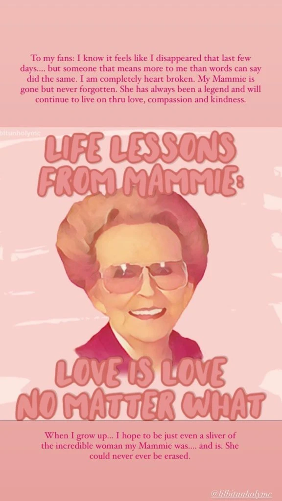 Además, en sus historias aclaró que la muerte no sucedió hoy: "Sé que parece que desaparecí en los últimos días... pero alguien que significa para mí más que lo que las palabras pueden expresar hizo lo mismo. Tengo el corazón absolutamente roto. Mi Mammie se fue pero nunca la olvidaré. Ella siempre fue una leyenda y va a seguir viviendo a través del amor, de la compasión y de la amabilidad".