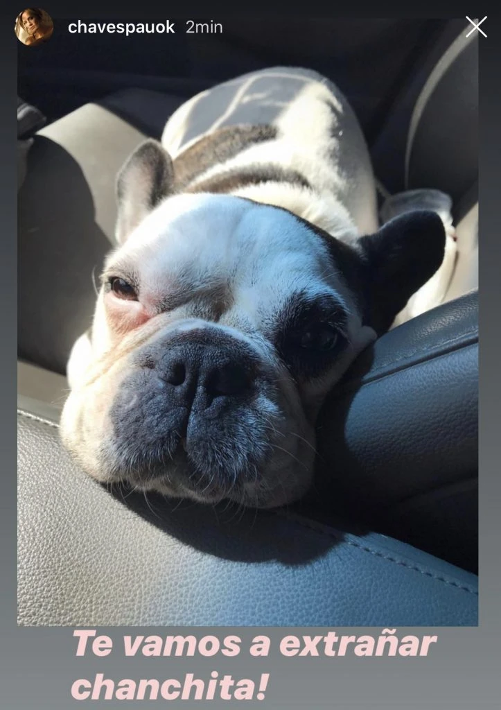A las 18:40, Paula Chaves (35) utilizó su cuenta de Instagram para escribir unas sentidas palabras que dicen: "Chau Chanchita Linda... Hoy se nos fue Renata sin previo aviso, pero sin sufrir... rodeada de amor, al Cielo de lo Perros Felices...".