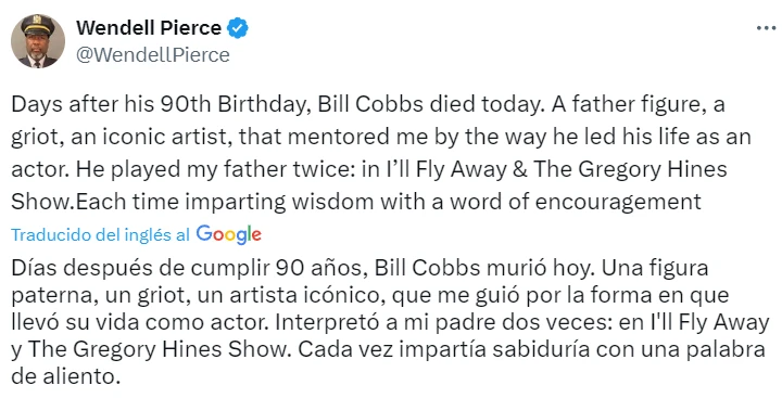 Wendell Pierce, quién actuó con Cobbs en I'll Fly Away y The Gregory Hines Show, también le dejó un mensaje a través de su cuenta de X.