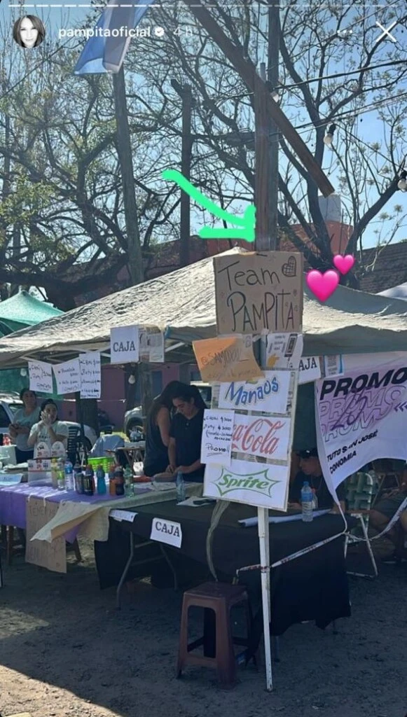 Sin embargo, un detalle llamó la atención, tanto de la modelo como luego de sus seguidores. Es que, en un momento, Pampita subió una historia en la que se veía un puesto donde vendían gaseosas para quienes estaban caminando. Entre los carteles había uno en el que decía: "Team Pampita". La modelo no solo compartió la imagen, sino que destacó este cartel y le agregó unos corazones rosas al lado.