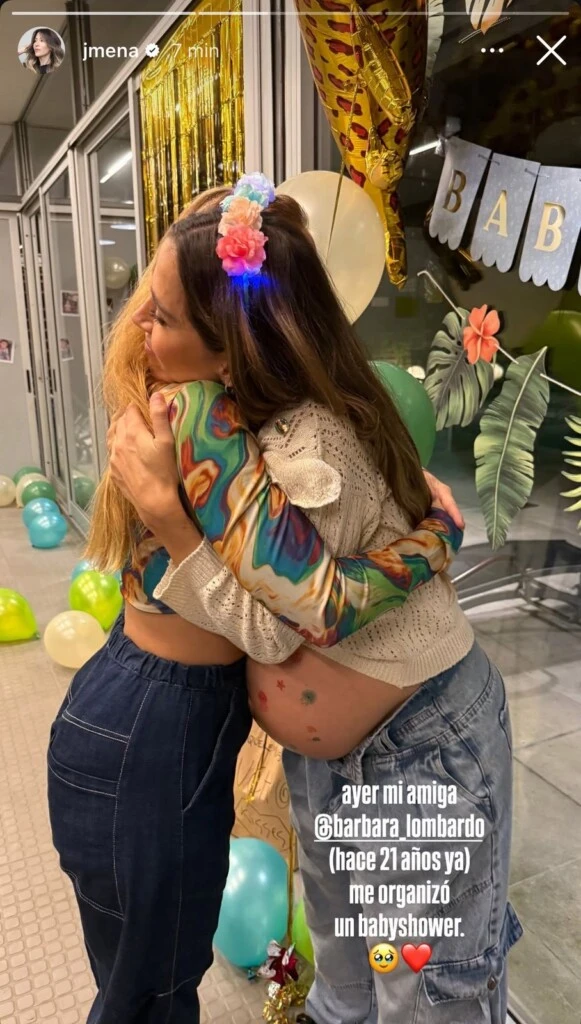 A través de las redes sociales, la artista compartió una tierna postal abrazando a Bárbara y reveló: "Ayer mi amiga, hace 21 años ya, me organizó un baby shower". Según se puede ver que en la postal, el sábado por la tarde, la actriz le armó un festejo a su amiga, con temática de selva.
