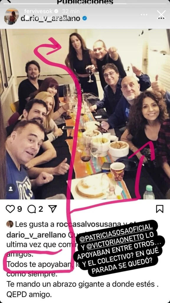 "Querida Tota esta fue la ultima vez que comimos en casa junto a otros amigos. Todos te apoyaban, lo pasamos muy bien como siempre. Te mando un abrazo gigante a donde estés. QEPD amigo", escribió el productor en el posteo de Instagram.