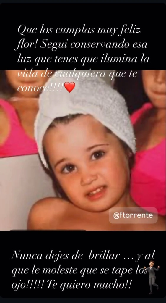 El posteo de Fabián Mazzei fue replicado en sus historias de Instagram. "¡Que los cumplas muy feliz, Flor! Seguí conservando esa luz que tenés que ilumina la vida de cualquiera que te conoce", comenzó escribiendo el también actor.