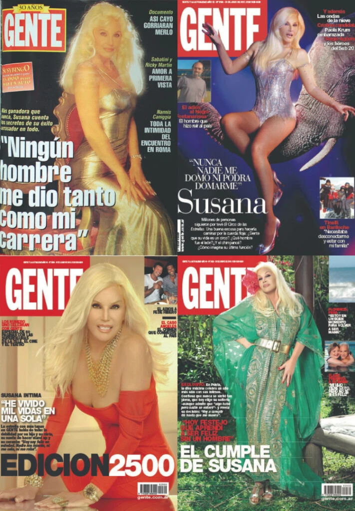 Lo dicho: fue para el aniversario número cincuenta de GENTE -consumado en la edición 2526 del 10 de noviembre de 2015-, cuando Susana volvió a nuestra portada, ahora junto a Marcelo Tinelli, Mirtha Legrand, Adrián Suar, Guillermo Vilas, Natalia Oreiro, Charly García, Valeria Mazza, Palito Ortega, Araceli González y Tini Stoessel. Entonces admitía desde la nota individual interna que recorría su trayectoria: