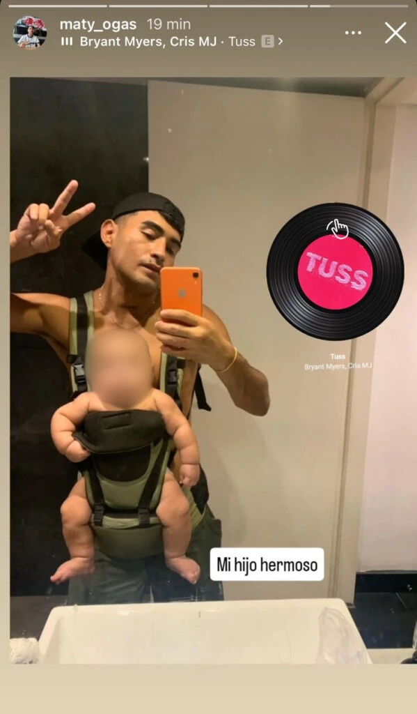 Horas después de compartir esa historia, Matías volvió a subir a sus redes sociales una foto de su hijo. Se trataba de una postal tomada ante un espejo en donde él aparecía con una mochila maternal con su bebé adentro. "Mi hijo hermoso", escribió el papá del menor sobre esa instantánea en la que él aparece haciendo la V de la victoria, seña con la que también se transmite paz, solidaridad y resistencia.