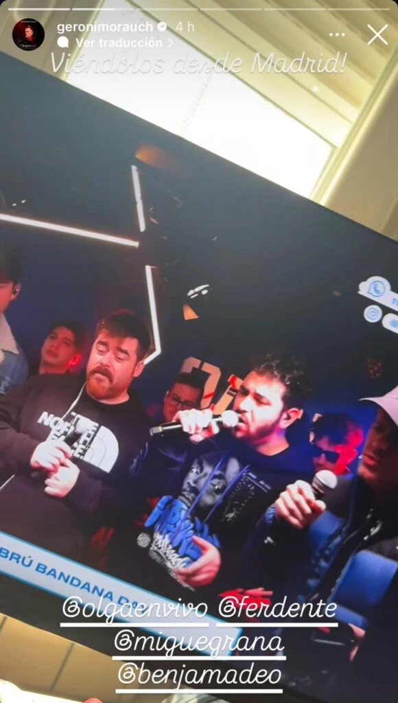 Mientras transcurría el "Mambrú Bandana Day", Gerónimo comenzó a compartir algunas historias alusivas en su cuenta de Instagram, dejando en claro que, a pesar de la distancia, estaba presente. "Viéndolos desde Madrid", escribió el artista en un video en el que se ve el comienzo del programa, cuando cantaron sus ex compañeras interpretaron 'A veces'.