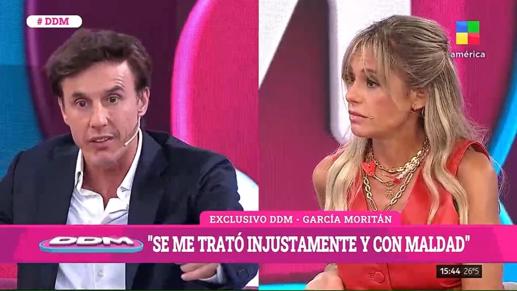 "No, no estoy enojado. Sí sentí que se me trató muy injustamente, con mucha maldad (...) definitivamente la imagen que instalaron los medios no tiene nada que ver con lo que...", respondía García Moritán cuando fue cortado en seco por la conductora: "Dejáte de echarle la culpa a los medios, porque los medios también hicieron que vos pudieras ocupar el rol político que tenías".