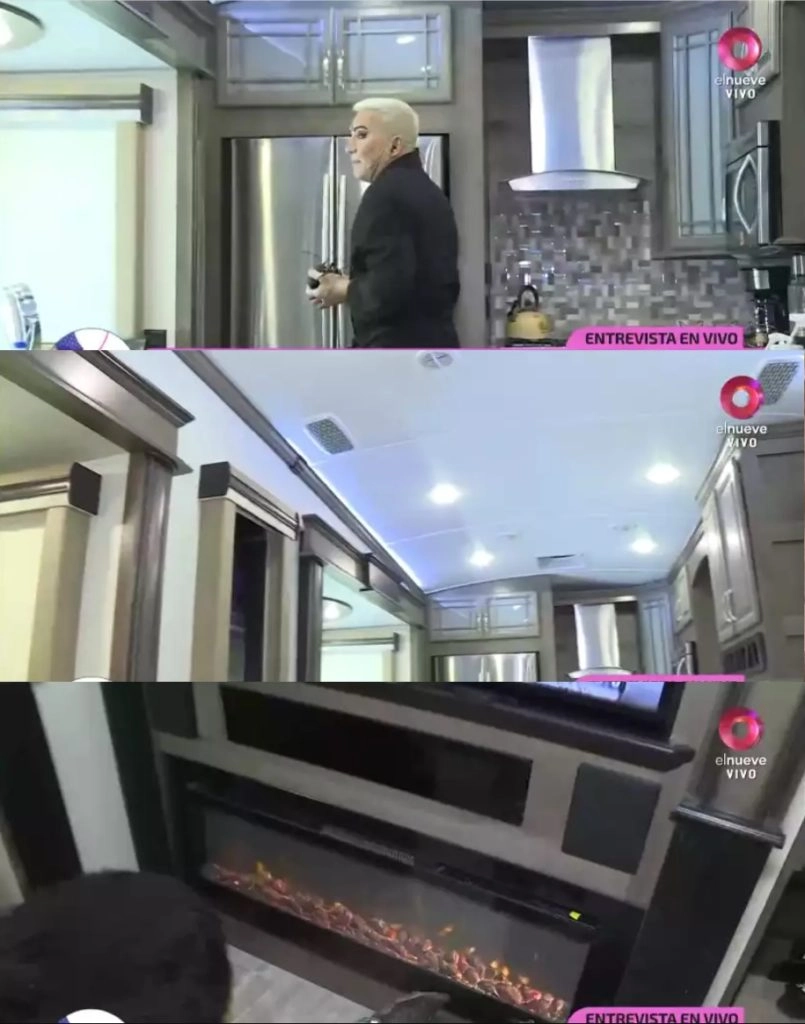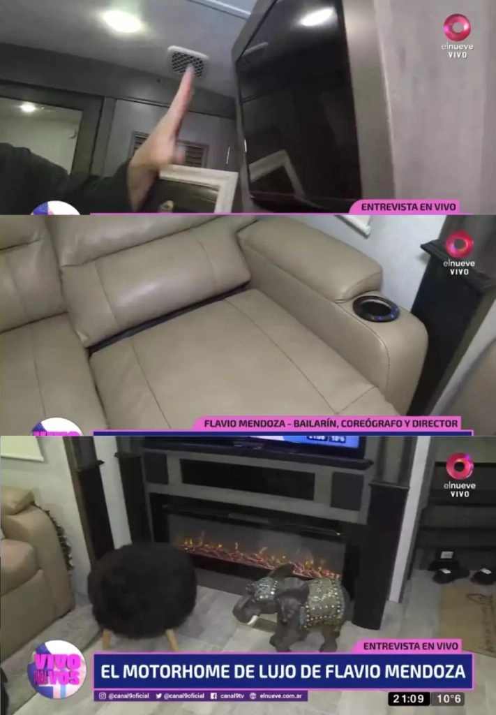 El gran toque a la casa rodante se lo da la chimenea digital, un sofisticado electrodoméstico que aporta calor artificial cuando la temperatura baja considerablemente. Dicho artefacto es acompañada por un gigante televisor que Flavio Mendoza para disfrutar cómodamente de series, películas y programas de televisión.