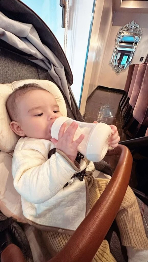 "¿En qué momento se volvió adolescente?", escribió la modelo junto a una hermosa fotografía de su hija que a su corta edad aprendió a sostener su mamadera. Su mamá emocionada, vive cada primer momento de su hija con muchísima alegría y orgullo.