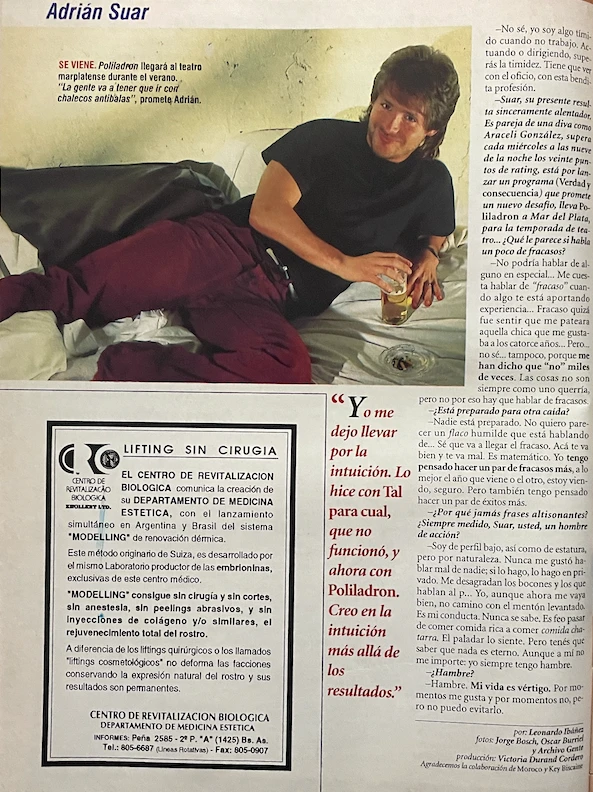 -A propósito, ¿qué hay del Adrián Suar jefe? Es difícil hacer respetar la juventud? -promediaba el reportaje de 1995.