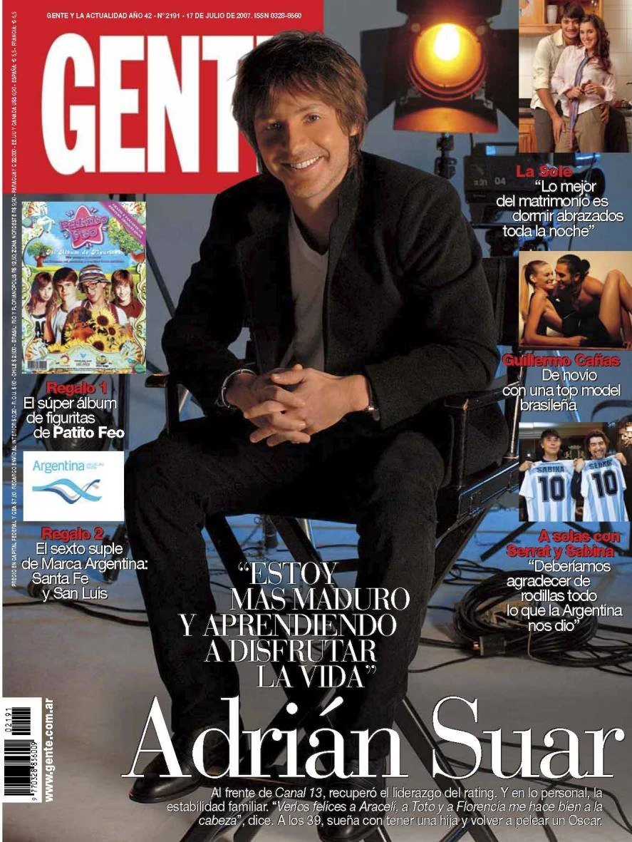 -Hambre. Mi vida es vértigo. Por momentos me gusta y por momentos no, pero no puedo evitarlo" -cerraba Adrián la nota de su primera tapa en GENTE.