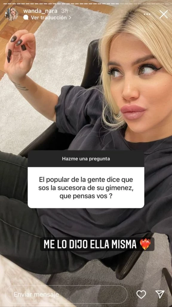 Fue la empresaria cosmética quien confirmó la noticia a través de sus redes sociales. En la tarde del lunes, Wanda abrió la 'cajita de preguntas' y respondió las variadas consultas de sus seguidores. "El popular de la gente dice que sos la sucesora de Su Giménez ¿Qué pensás vos?", le escribieron, a lo que sin titubear afirmó: "Me lo dijo ella misma".