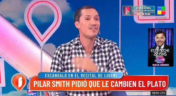 Ante esto, Guido Záffora relató que previo a que se sirva el postre, Luismi comenzó el concierto. Y añadió: "En un momento, él le hizo un gesto a sus fans para que se acerquen al escenario. Se empezaron a parar y las fans que estaban atrás de todo se fueron adelante. Es por eso que las que estaban adelante, que habían pagado más cara la entrada, no veían nada. Me dicen que fue muy incómodo".