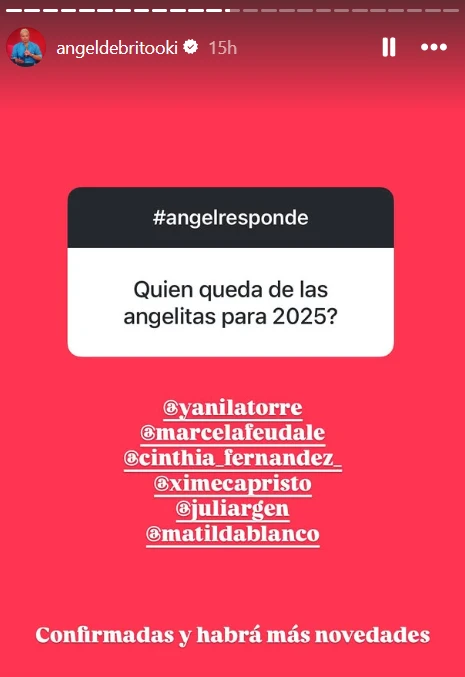 El martes por la tarde, Ángel De Brito le propuso a sus seguidores que le hagan preguntas y él las iría respondiendo en las historias de su cuenta de Instagram. Como era de imaginarse, entre las consultas que le hicieron había una que se repetía y era qué angelitas iban a estar en 2025.