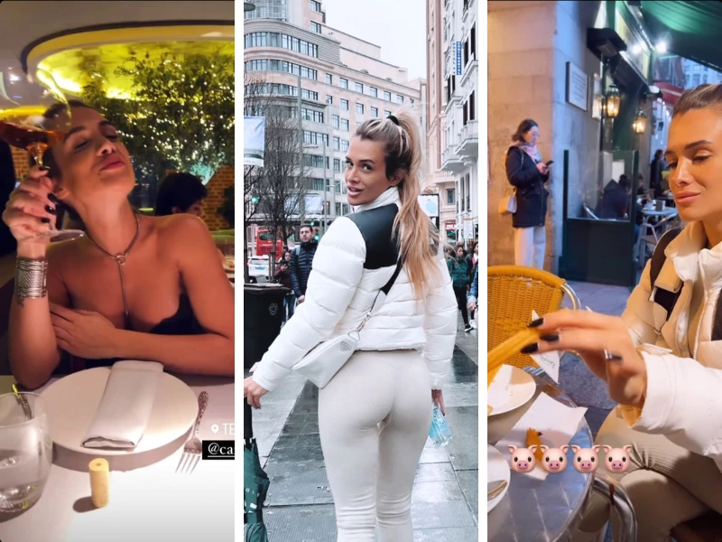 En primer lugar hizo una parada técnica por sus casas de ropa favorita en la Gran Vía y se fotografió caminando con algunas amigas con gran cantidad de bolsas. También decidió volver a comer los churros españoles que tienen la característica de ser bañados en chocolate.