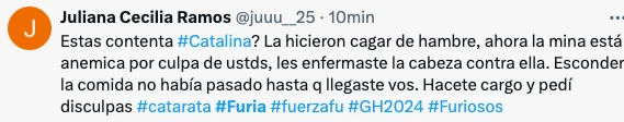 Algunos fanáticos de la participante trataron de responsabilizar a Catalina Gorostidi por el estado de salud de Furia.