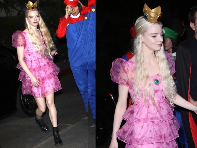 Anya Taylor-Joy, la estrella hollywoodense que creció en Argentina, eligió disfrazarse de la Princesa Peach del videojuego Mario Bros, a quién interpretó su novio, Malcolm McRae.