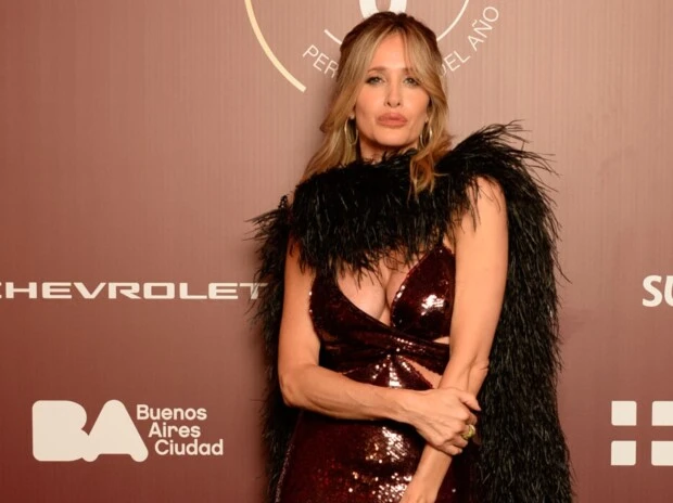 La modelo y conductora llegó con un look que acaparó miradas: un vestido color Malbec del diseñador Marcelo Zanek, con brillos, silueta ceñida y espalda descubierta. Ese detalle dejó ver sus tatuajes sagrados en tailandés, símbolos de protección que se hizo en 2019, tras su separación. “Son muy significativos para mí”, confesó en la alfombra roja.
