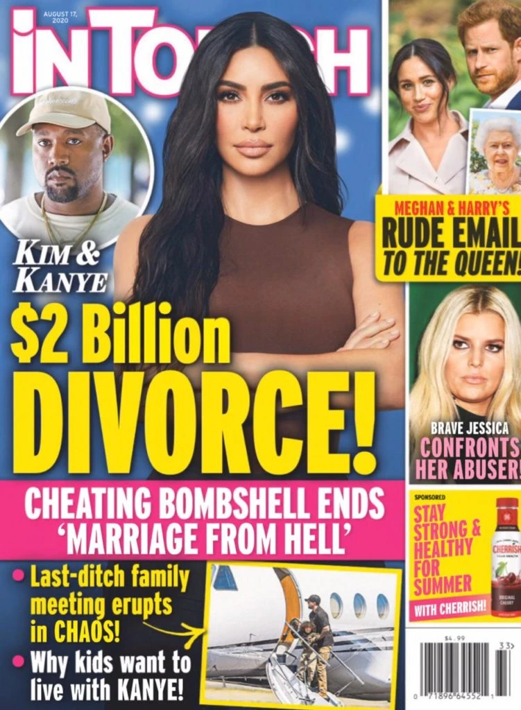 Según la revista In Touch, las infidelidades de la socialité terminaron con un "matrimonio del infierno". Además, la publicación promete develar por qué los hijos de la pareja "prefieren vivir con Kanye".