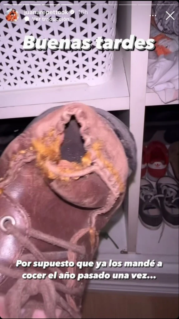 Todo comenzó en las últimas horas cuando la hija de Nicolás Repetto y Reina Reech compartió en sus historias de Instagram el deteriorado estado de un zapato escolar de su hijo mayor.