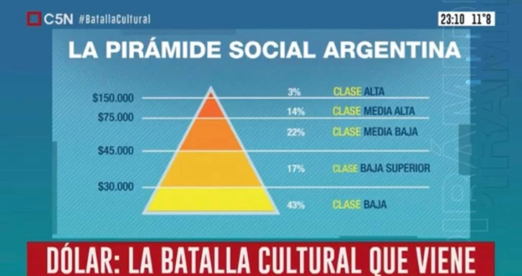"En este país sos clase alta ganando menos de mil dólares por mes (lavando copas en un país en serio ganas 1.200 USD)", destacó compartiendo un gráfico de C5N.