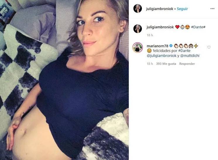 “Felicidades por Dante, Juli y Matías”, escribió por entonces Mariano en el posteo de la modelo que anuncia el embarazo de Dante. El futuro papá del bebé, por ese entonces, le respondió con emojis demostrando la buena onda entre ellos también.