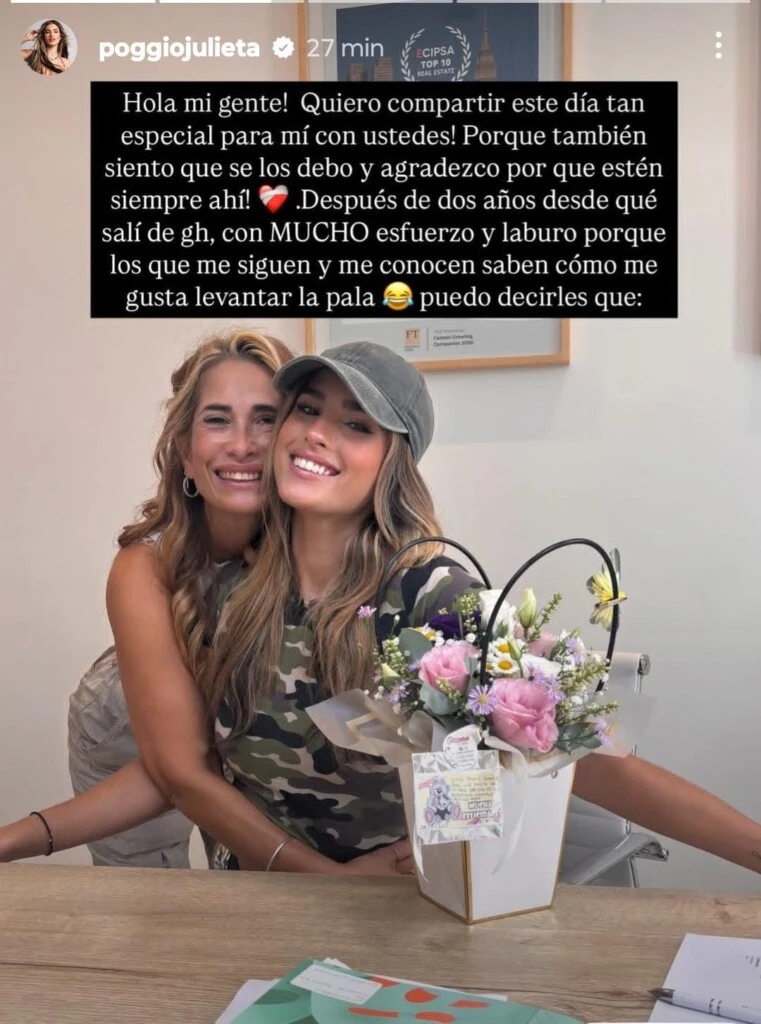 Tras contar la noticia, Julieta contó en sus historias de Instagram cómo fue este emocionante momento: "Quiero compartir este día tan especial para mí con ustedes. Porque también siento que se los debo y agradezco porque estén siempre ahí", comenzó diciendo.