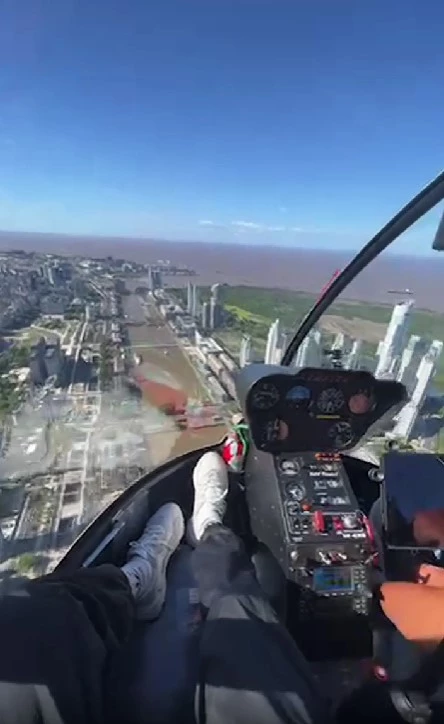 Más tarde, fue hasta el helipuerto y se subió al vehículo que lo llevaría por los aires a celebrar con el pueblo argentino. Desde el cielo, hizo algunos videos que dejó colgados en su perfil de Instagram.