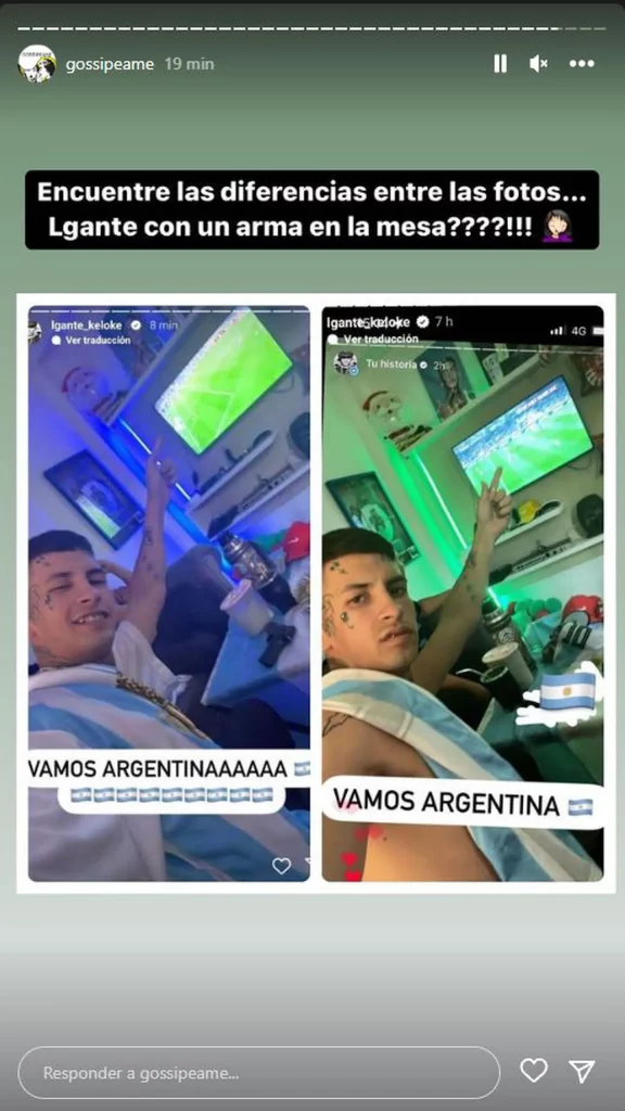 No todas fueron buenas para L-Gante. En el día de ayer, durante el partido, quedó envuelto en un escándalo en redes sociales porque compartió una selfie donde se veía un arma arriba de la mesa.