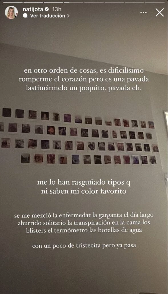 Nati Jota confesó que tiene "el corazón lastimado"