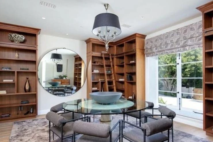 La imponente casa cuenta con una cocina de chef, una biblioteca con grandes anaqueles y un cine completamente equipado para maratones de series y películas.