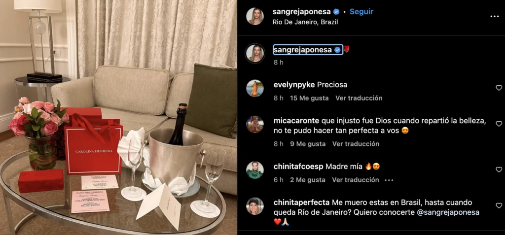 Actualmente, la actriz y cantante argentina ya abandonó los Estados Unidos y se encuentra en Brasil, en el exclusivo Copacabana Palace de Río de Janeiro, tras haber sido invitada a asistir al desfile de Carolina Herrera: el primero en 40 años fuera de Nueva York, todo un hito para la famosa casa de moda.