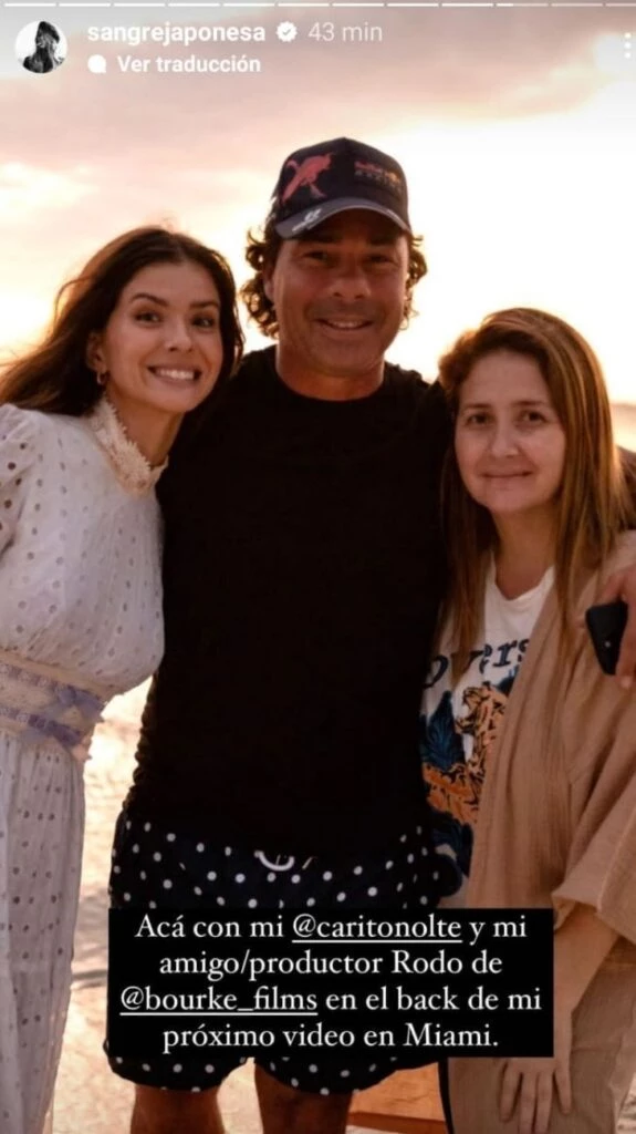Además fue la propia actriz la que subió una foto con Lamboglia, acompañada de una revelación profesional: su próximo proyecto musical. "Acá con Caro Nolte y mi amigo/productor Rodo (Lamboglia) en el back de mi próximo video musical", señaló a través de su cuenta de Instagram.