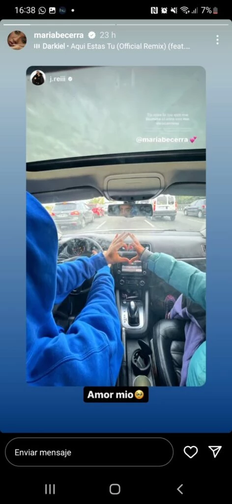 Hasta el momento María Becerra prefirió no devolverle el follow a su ex novio y por el contrario, se mostró muy feliz junto a su actual pareja, J Rei, paseando en auto y dedicándole bonitas canciones de amor.