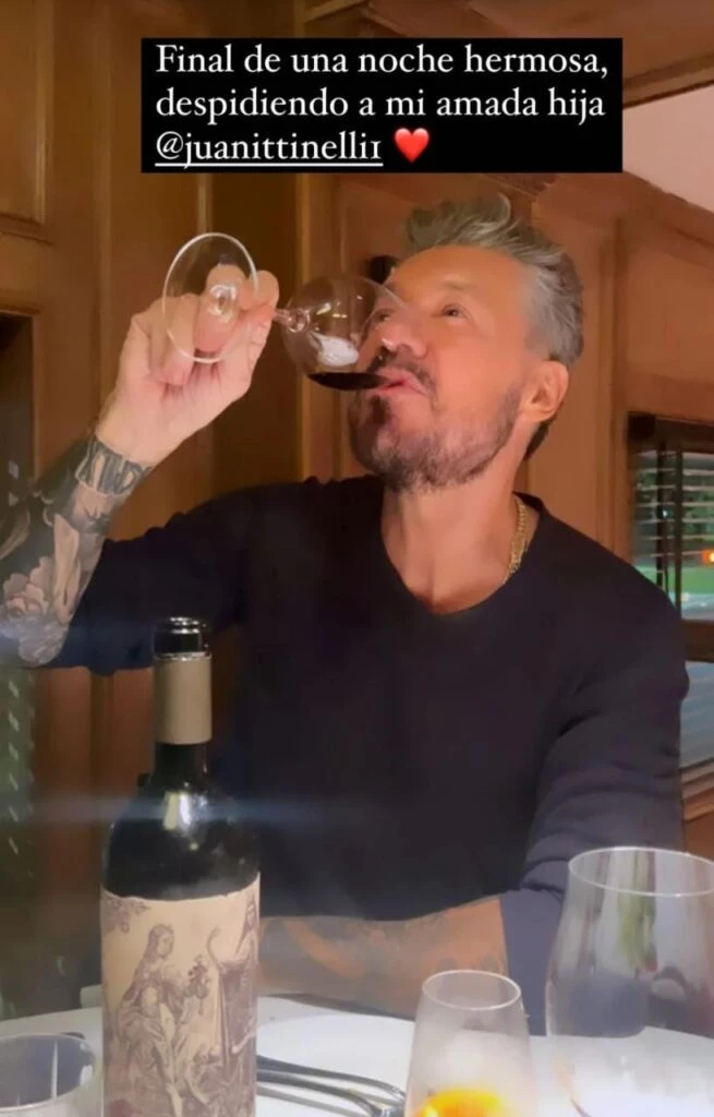 A pocas semanas del estreno de la nueva edición de Bailando por un sueño, Marcelo no dudó en tomarse el tiempo necesario para estar con su hija. "Final de una noche hermosa. Despidiendo a mi amada hija", escribió el conductor sobre una fotografía en la que brinda con una copa de vino.
