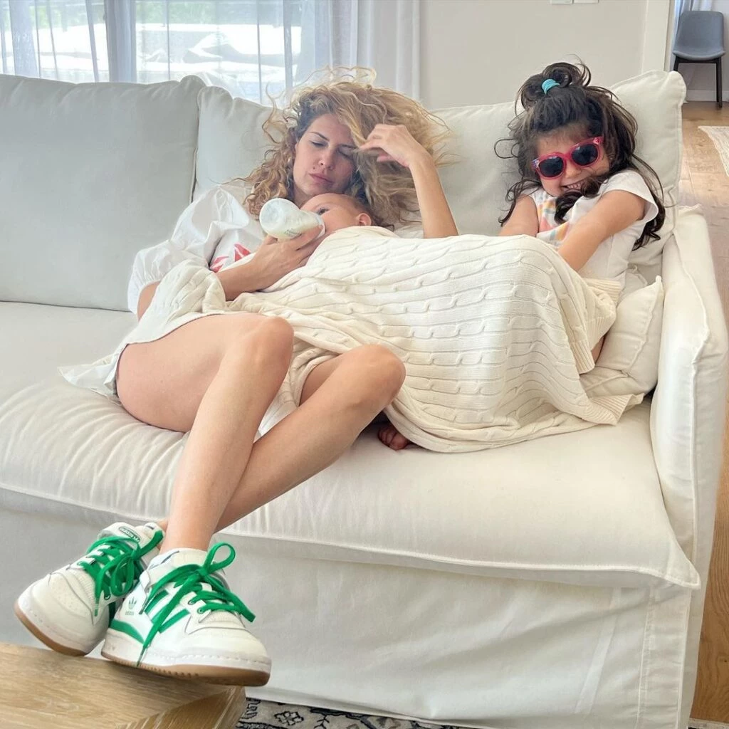 Recostada sobre un extenso sillón blanco, se pudo ver a la actriz con un vestido camisero y unas zapatillas dándole la mamadera a su hija más chica, en compañía de Belita.