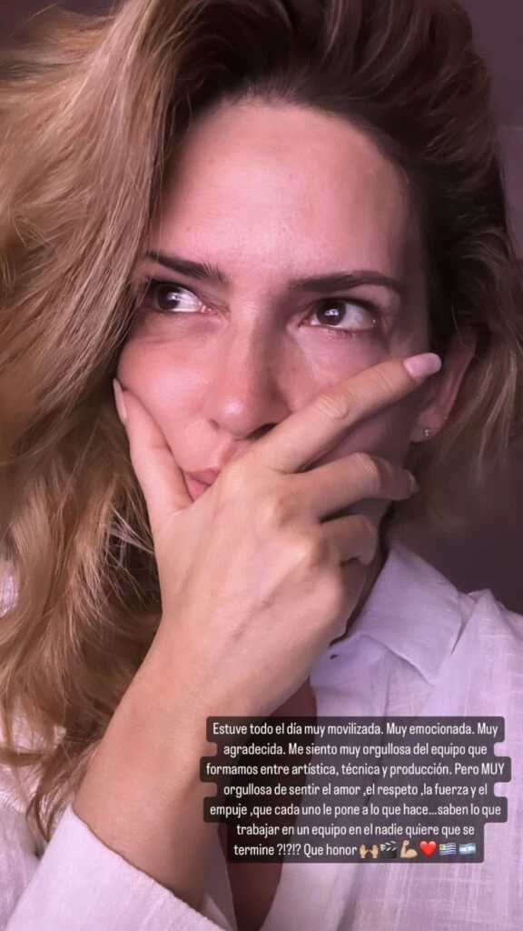 "Estuve todo el día muy movilizada", comenzó escribiendo la actriz en una de sus historias de Instagram junto a una foto donde se la veía llorando angustiada. Y continuó: "Me siento muy orgullosa del equipo que formamos entre artística, técnica y producción".