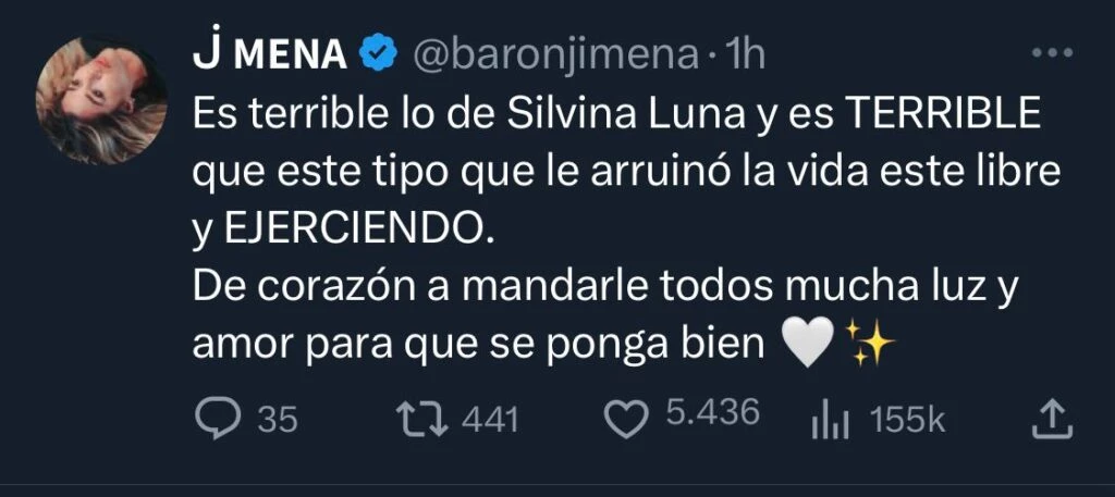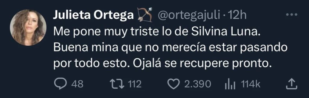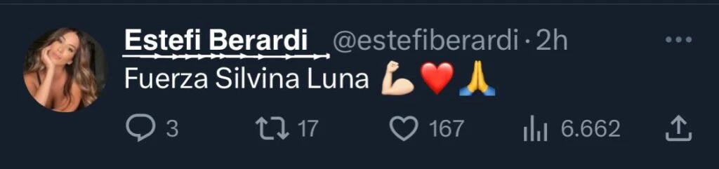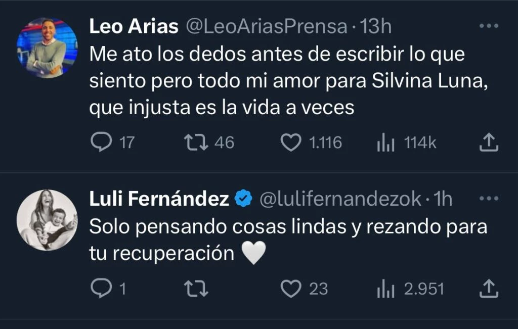 A través de las redes sociales, muchas figuras del medio fueron dejando sus mensajes creando una cadena de oración por la salud de Silvina Luna. Todos ellos le están enviando energías positivas para que su salud mejore.